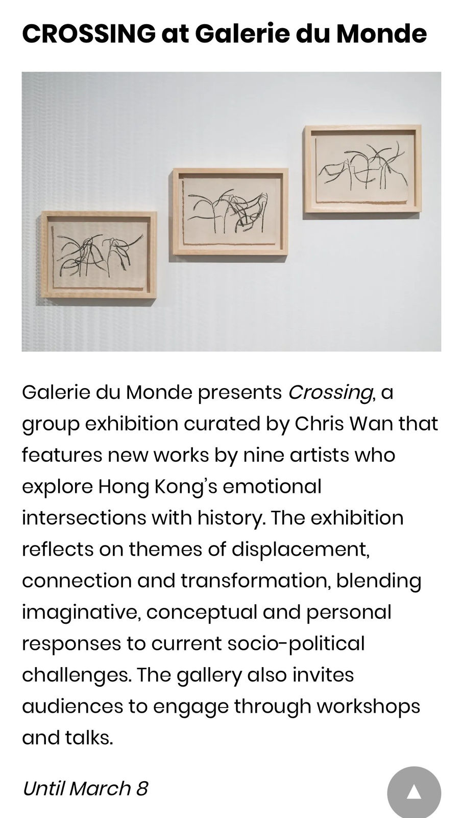 "Crossing 橫水“ curated by Chris Wan has been selected by Prestige in their article "Five New Exhibitions to Check Out This Februrary" by Madelaine Clark.
