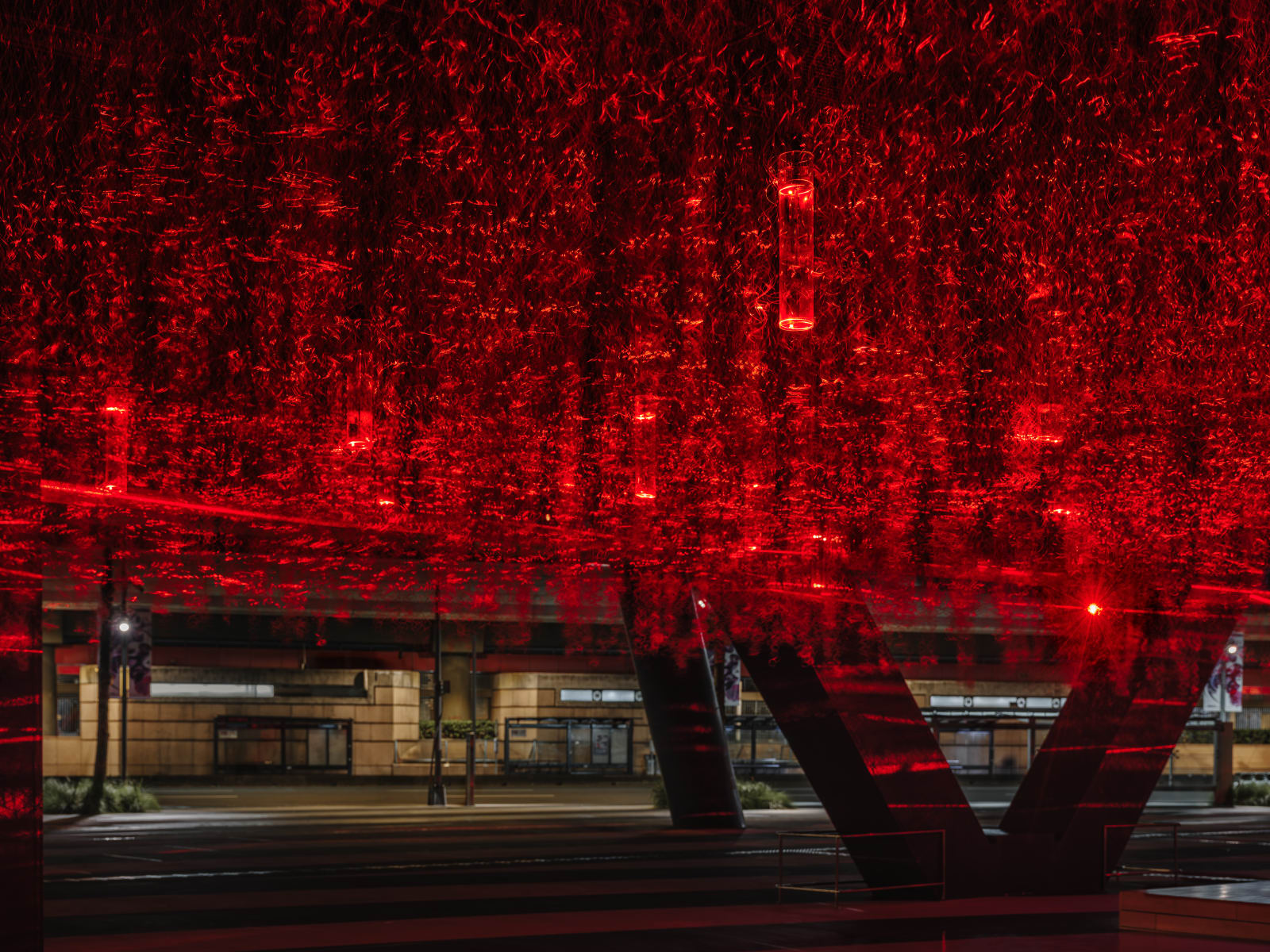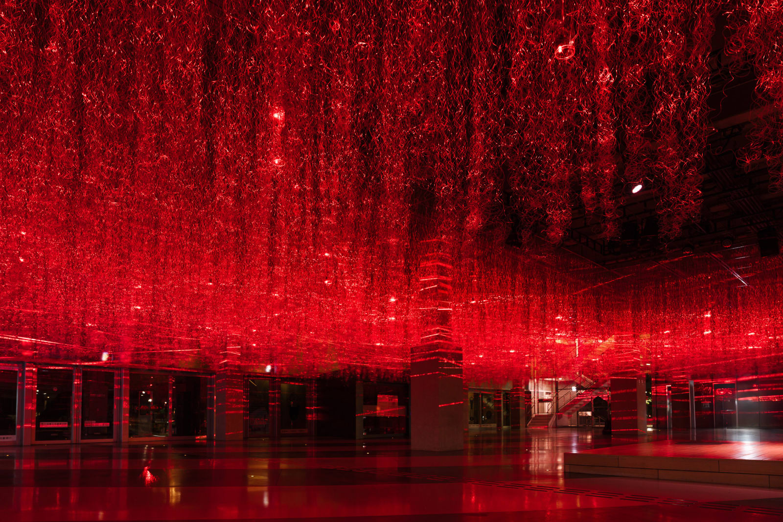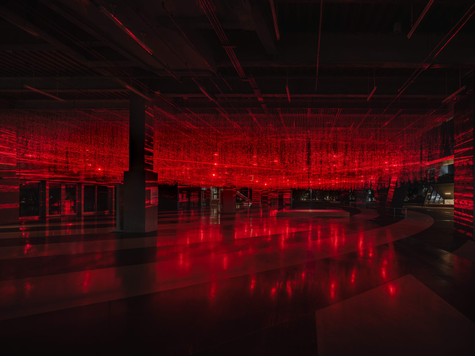 The work is situated within the ground floor plaza of the Taipei Performing Arts Center, designed by Rem Koolhaas & David Gianotten— a raised, open public space serving as a shared urban lobby where people freely pass through, linger, and pause. Fading Breeze intervenes at this scale with dense nylon threads, introducing the micro-movements of wind, light, and motion. It invites visitors to perceive their bodies within the vast space through a different scale, fostering a subtle yet poetic sensory experience between body and environment. The audience is invited to partake in an improvised performance that cannot be rehearsed, drifting freely like the breeze through this place.