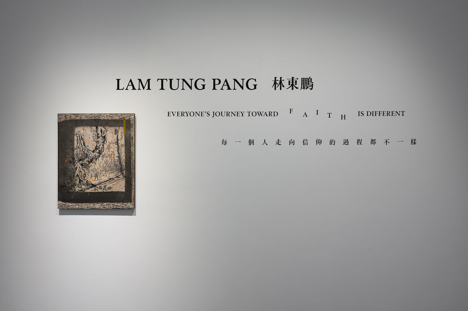 Transplanted creatives often describe leaving home as a process of taking step after step away from the familiar into an unknown landscape, until, looking back, they realize how far they have journeyed. In his inaugural solo exhibition at gdm Taipei, “Everyone’s journey toward faith is different,” Lam Tung Pang used this process of gradual removal as a framework to interrogate his formative experiences in Hong Kong, and to contemplate his future in Vancouver from a position of geographical and psychological distance following his emigration to Canada in 2022.